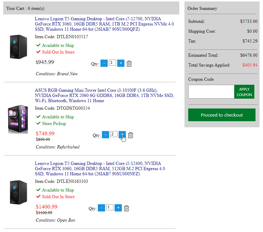 Below screenshots is the 95% done shopping cart page. When you view it. Please follow my mouse cursor.