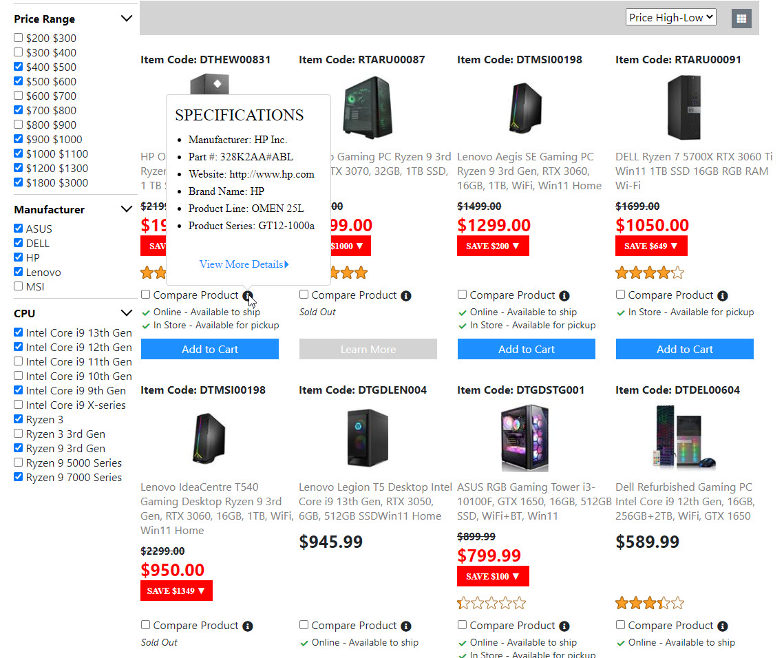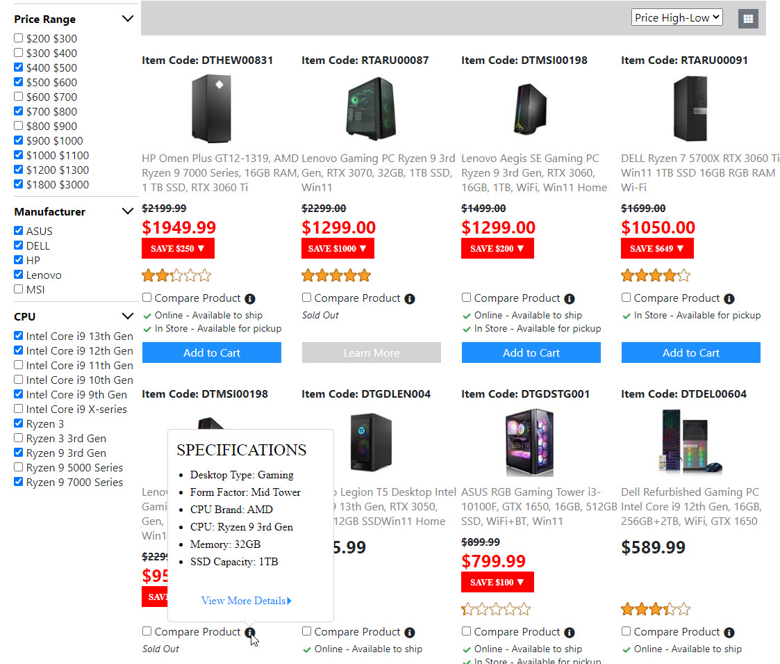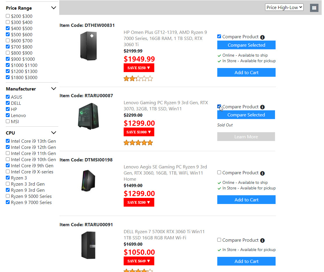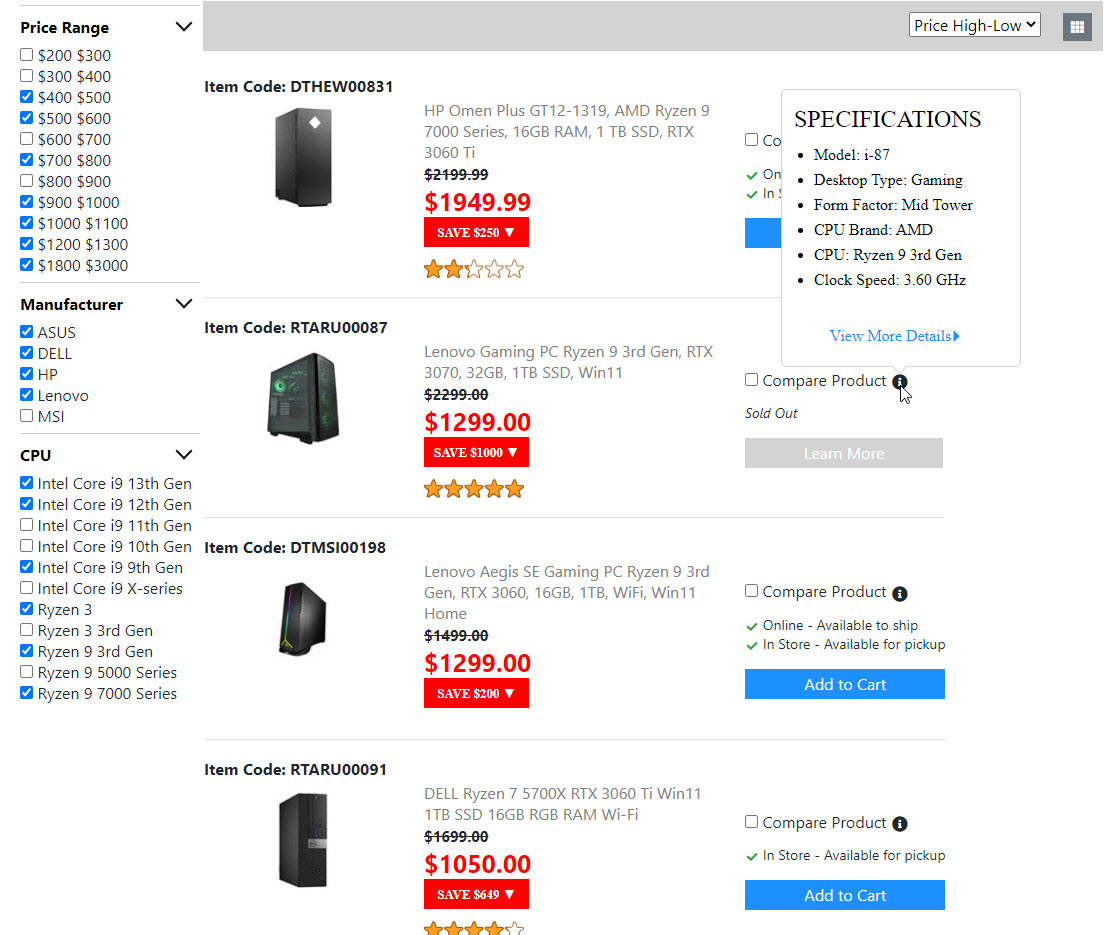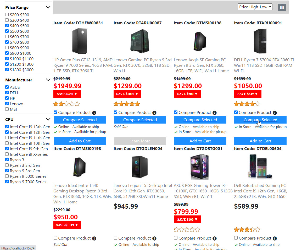 Below is the screenshots for the "Product List Page". Once I get the "Compare Product Page" done. Then the "Product List Page" is done. And I will move on to build the next page.