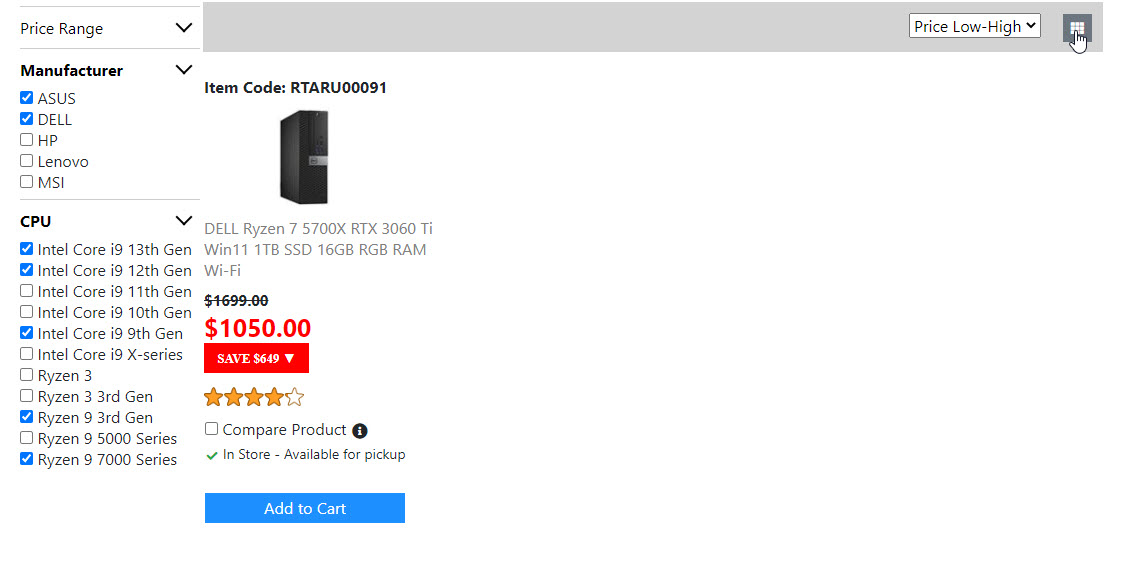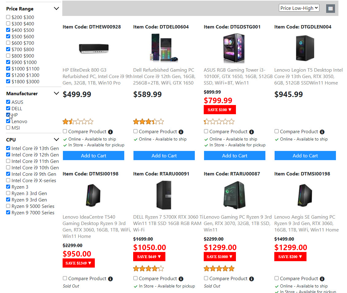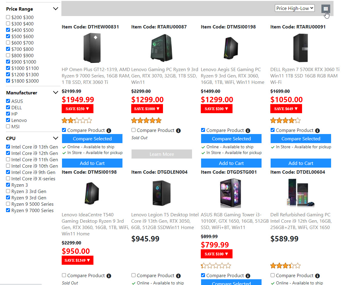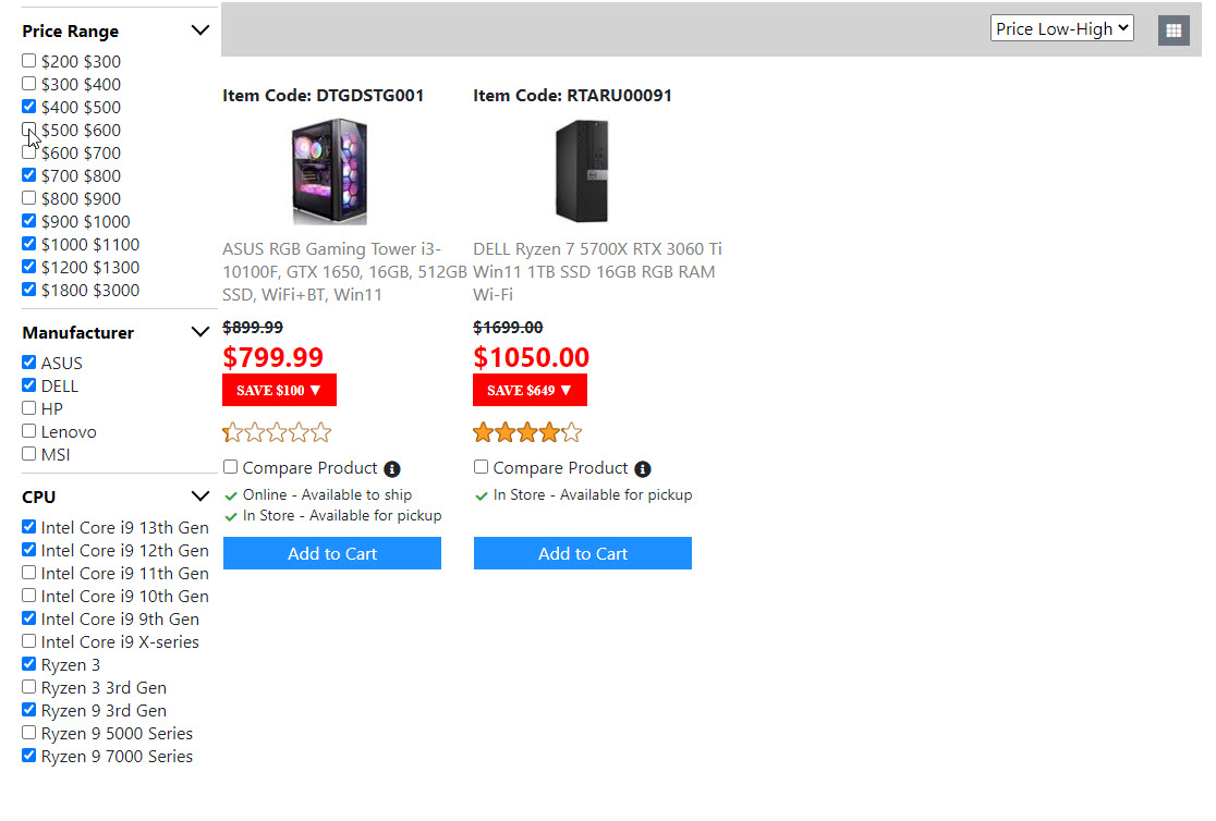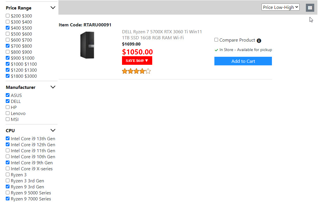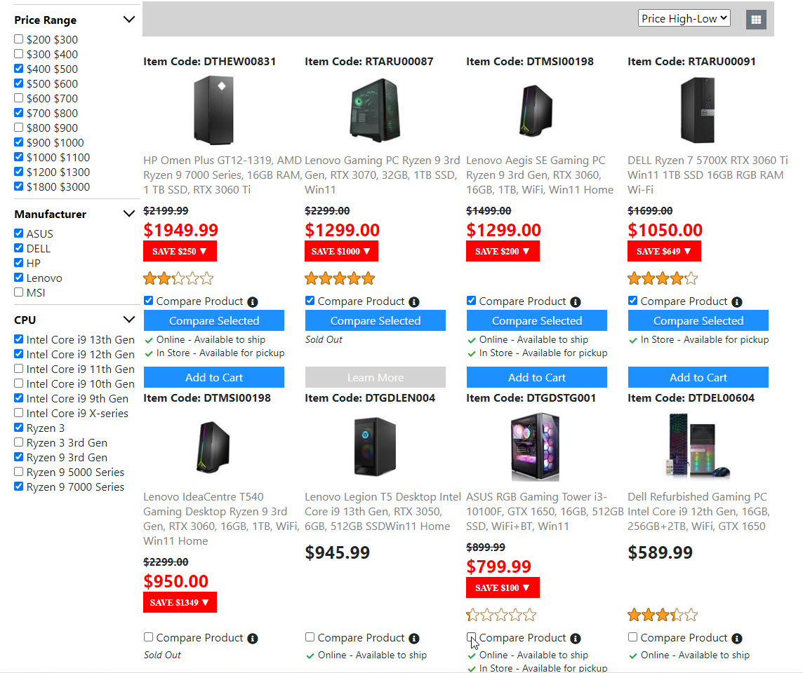 Below is the screenshots for the "Product List Page". Once I get the "Compare Product Page" done. Then the "Product List Page" is done. And I will move on to build the next page.