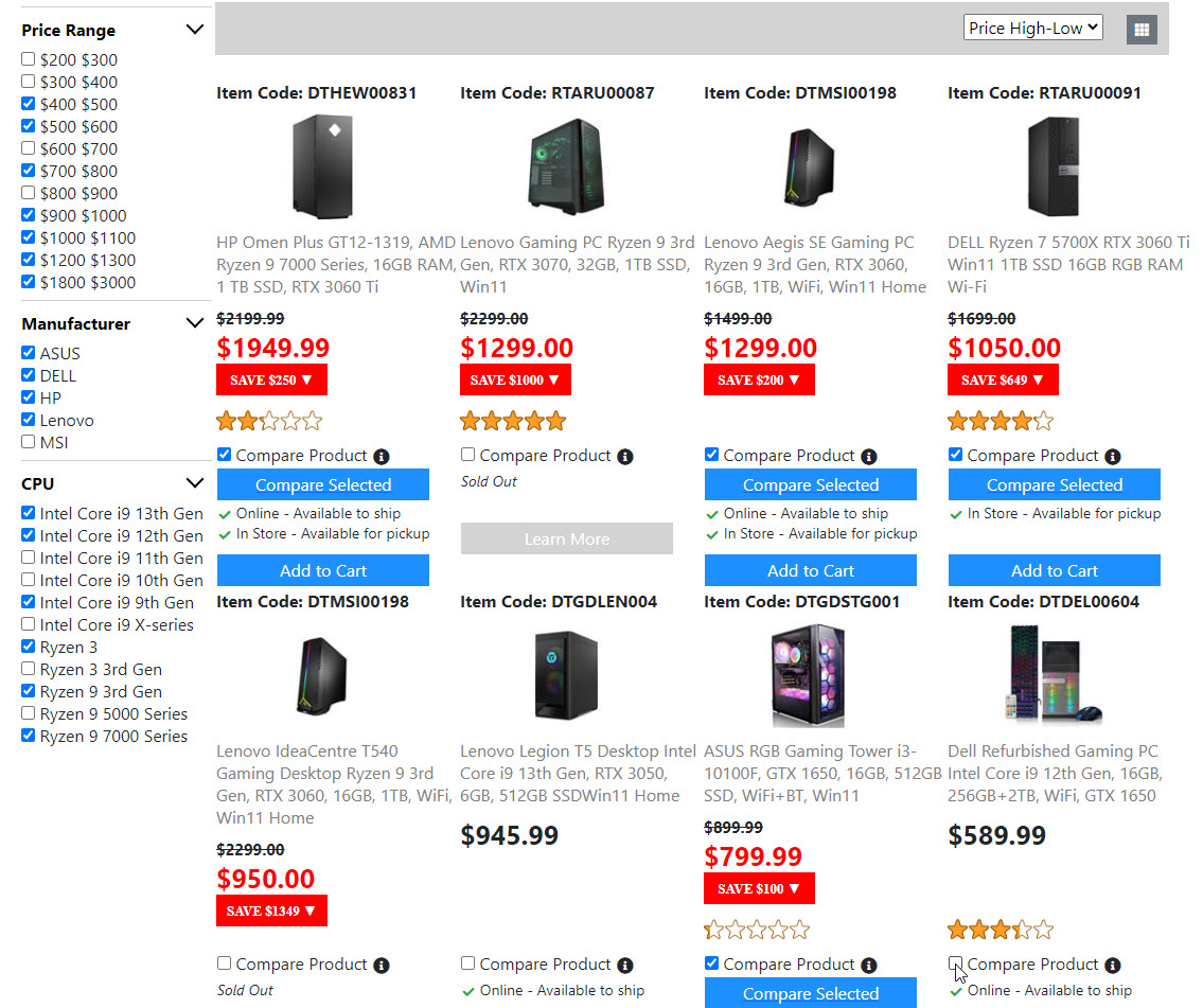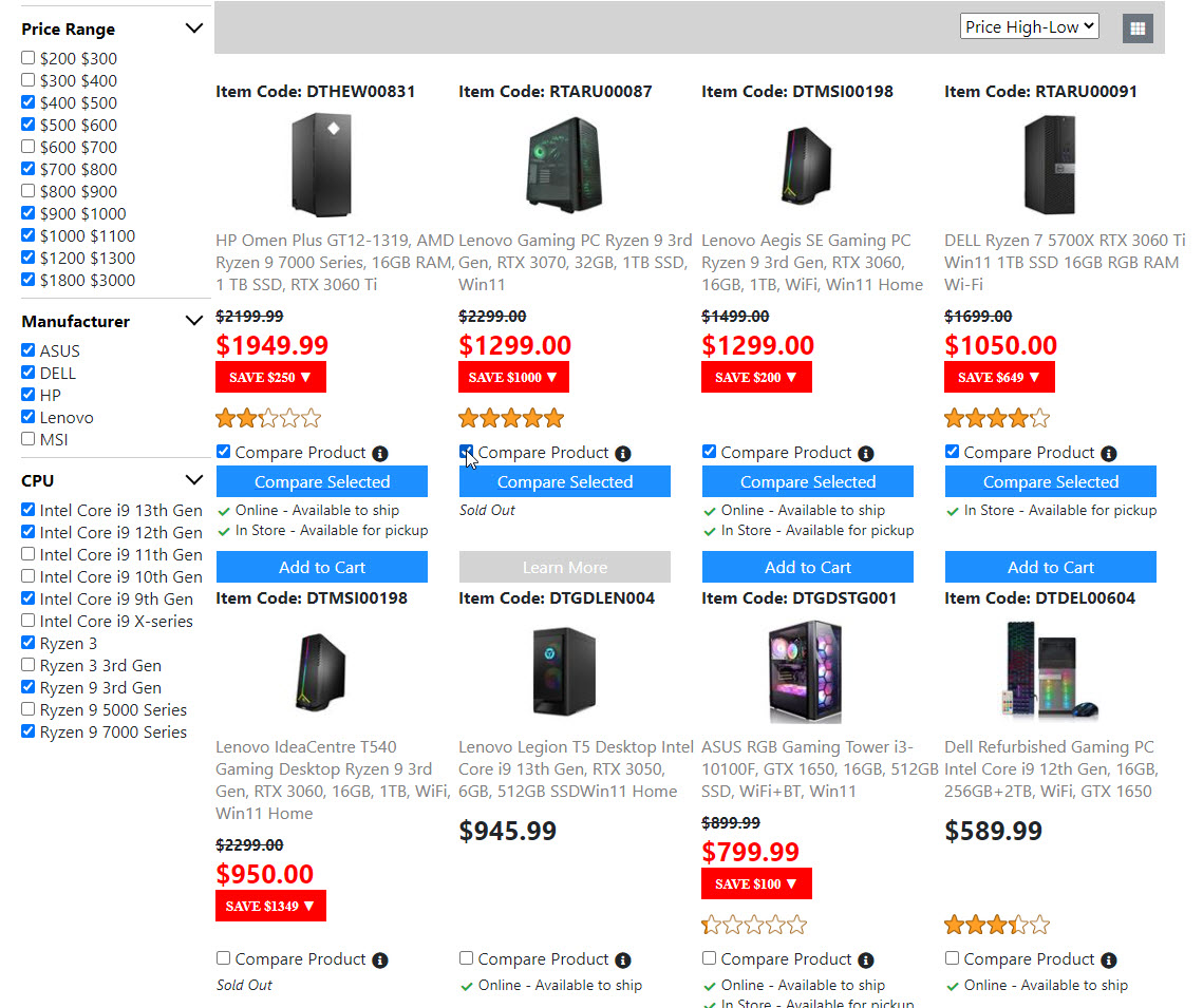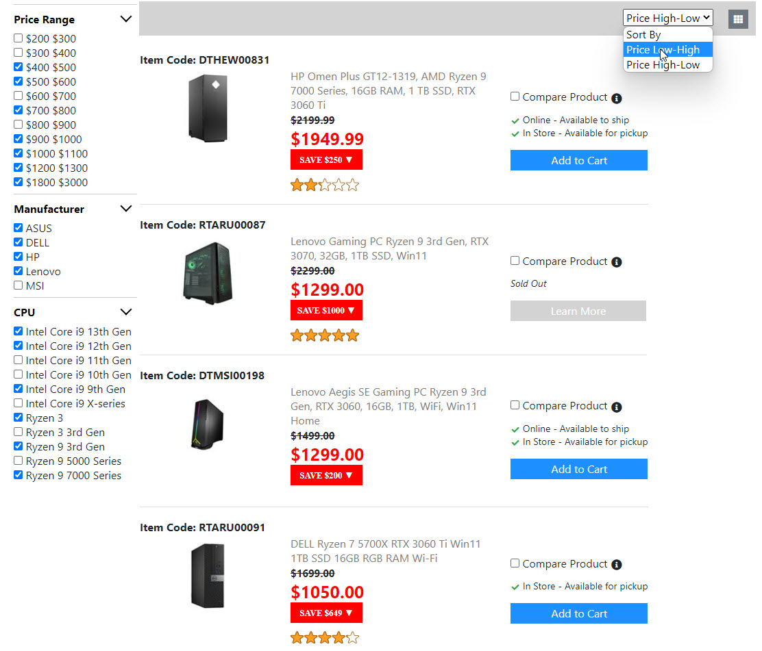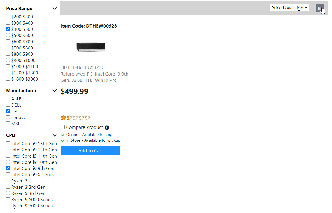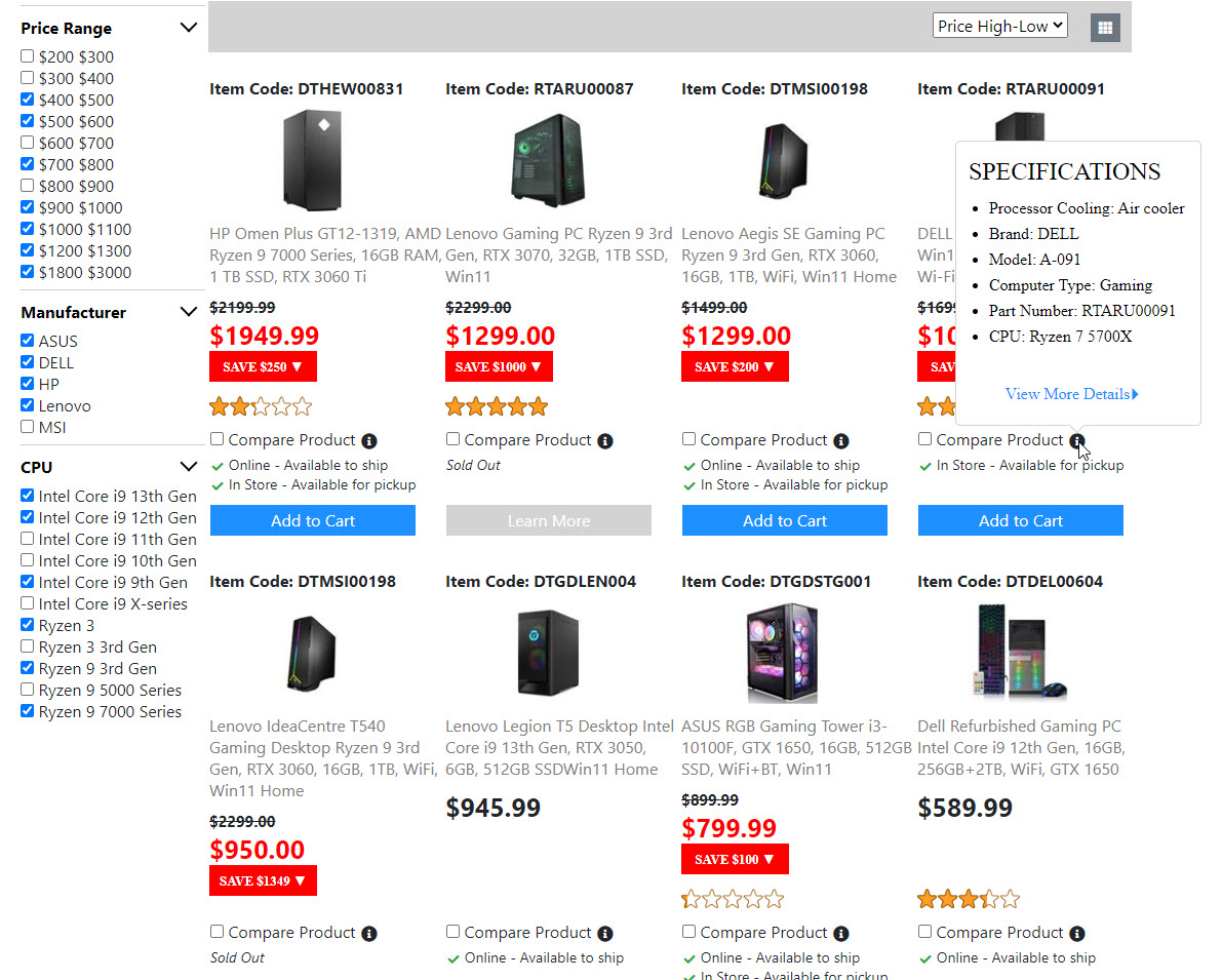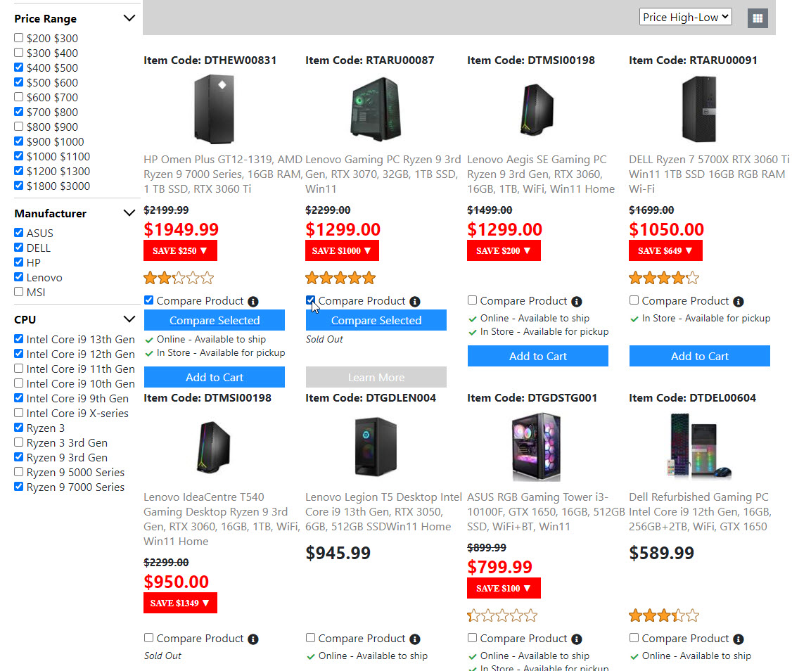 Below is the screenshots for the "Product List Page". Once I get the "Compare Product Page" done. Then the "Product List Page" is done. And I will move on to build the next page.