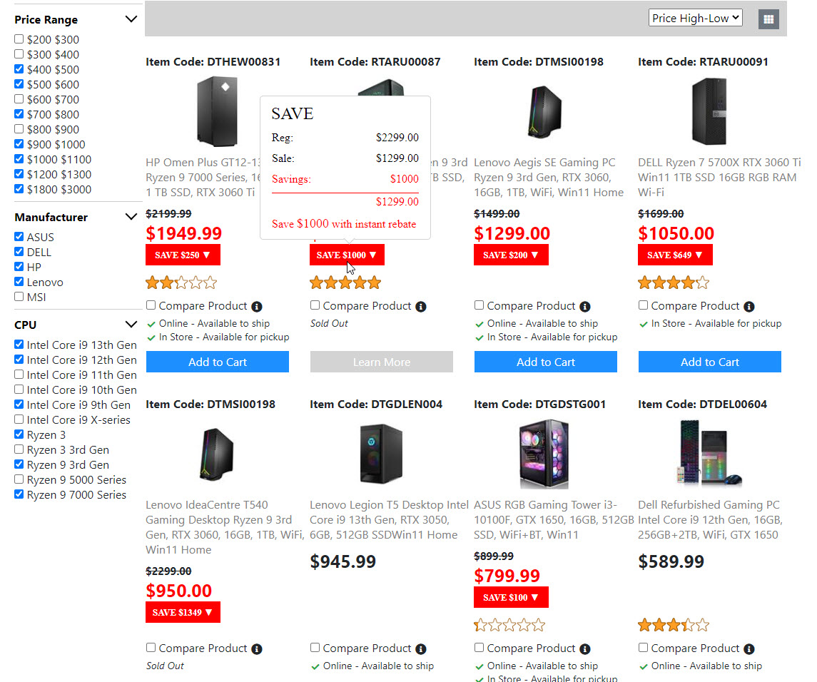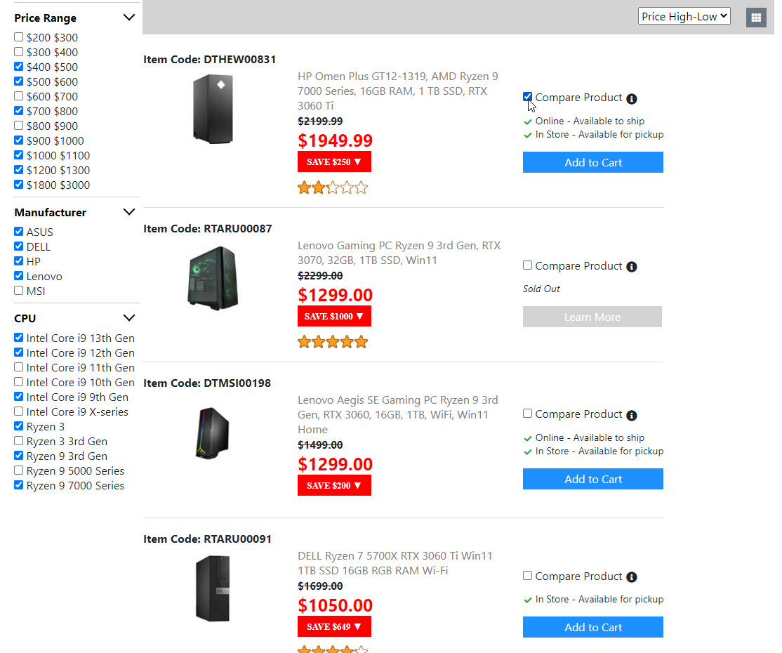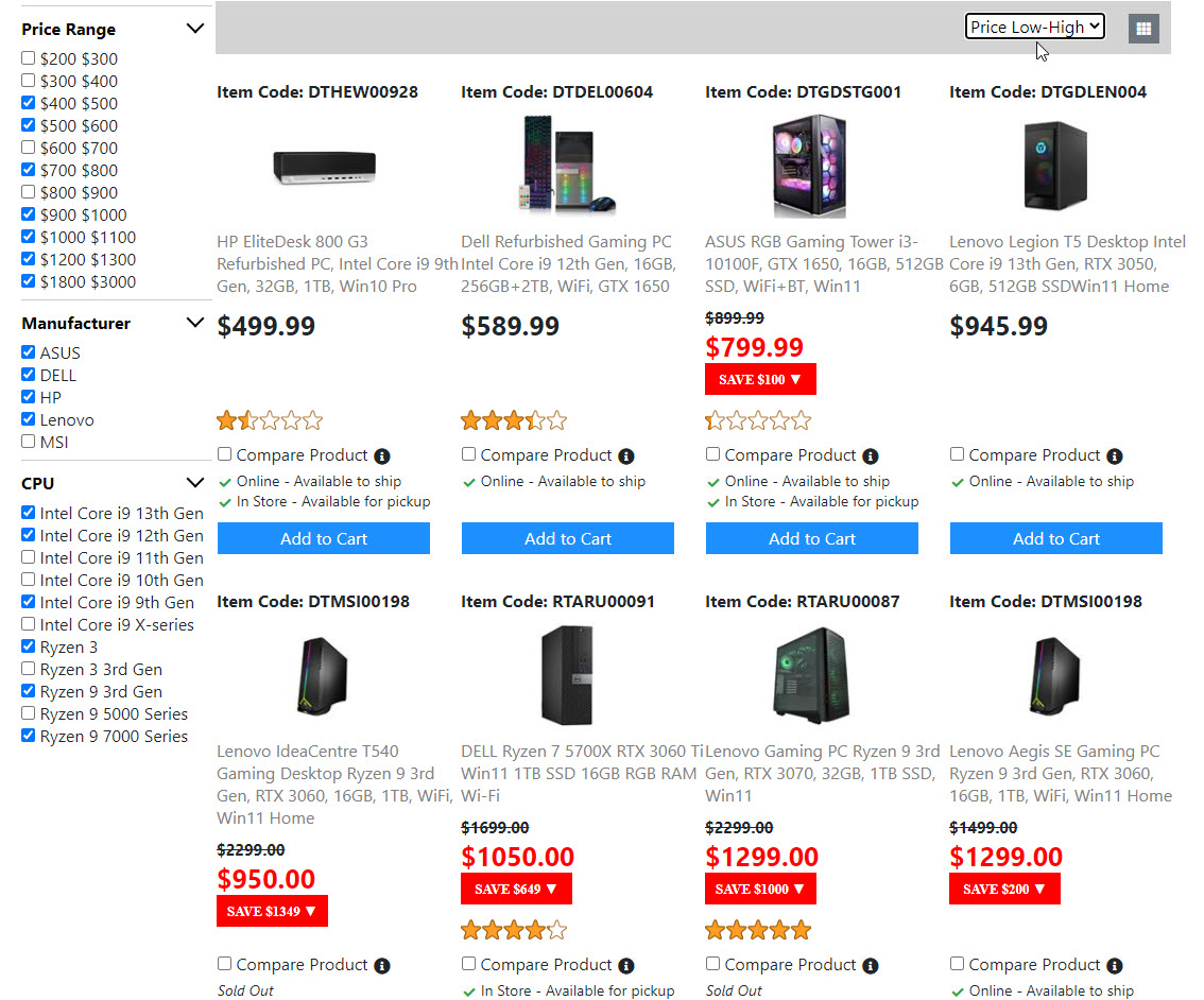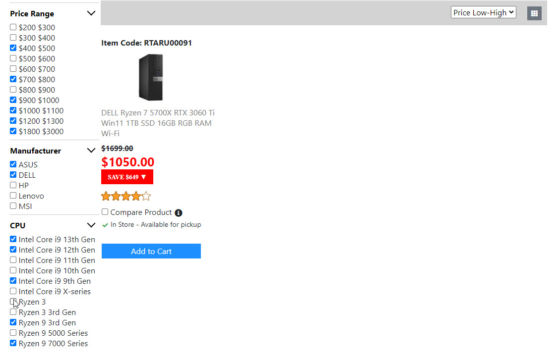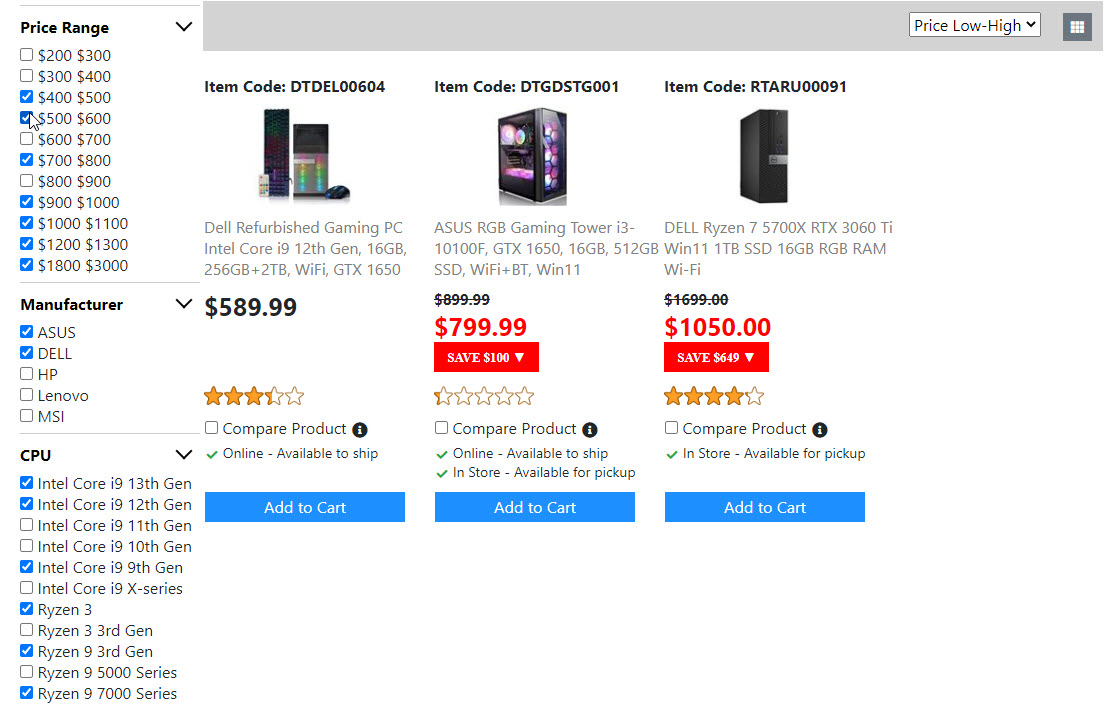 Below is the screenshots for the "Product List Page". Once I get the "Compare Product Page" done. Then the "Product List Page" is done. And I will move on to build the next page.