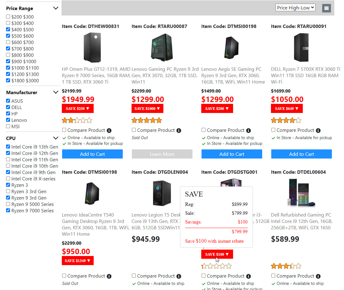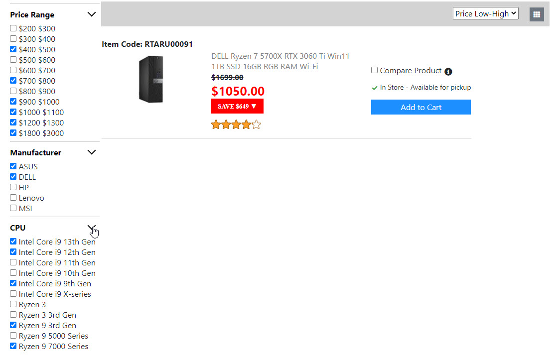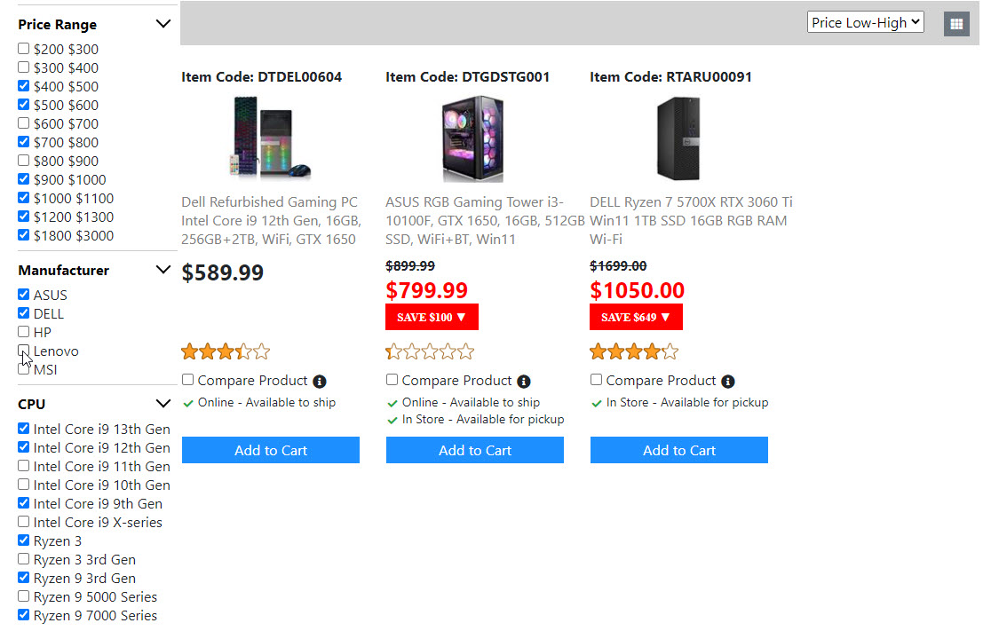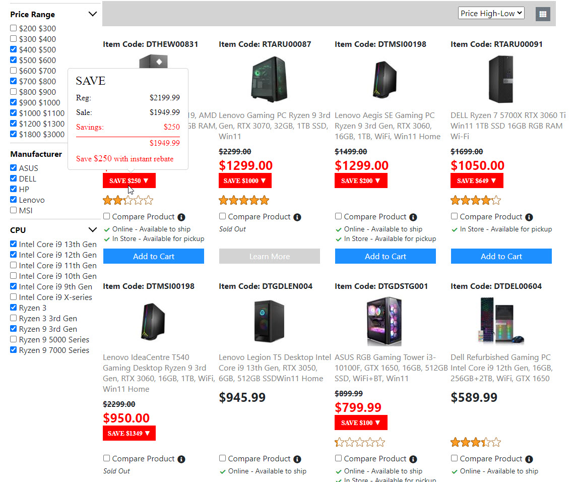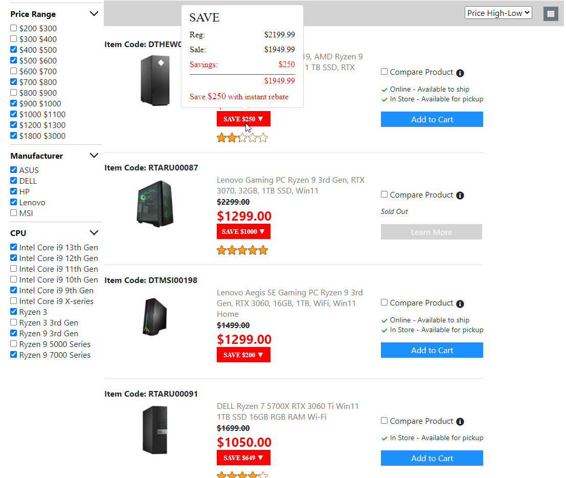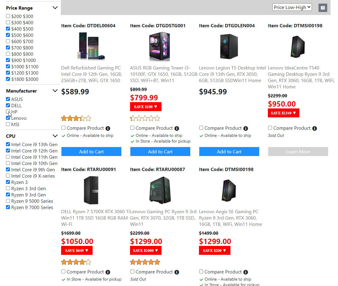 Below is the screenshots for the "Product List Page". Once I get the "Compare Product Page" done. Then the "Product List Page" is done. And I will move on to build the next page.