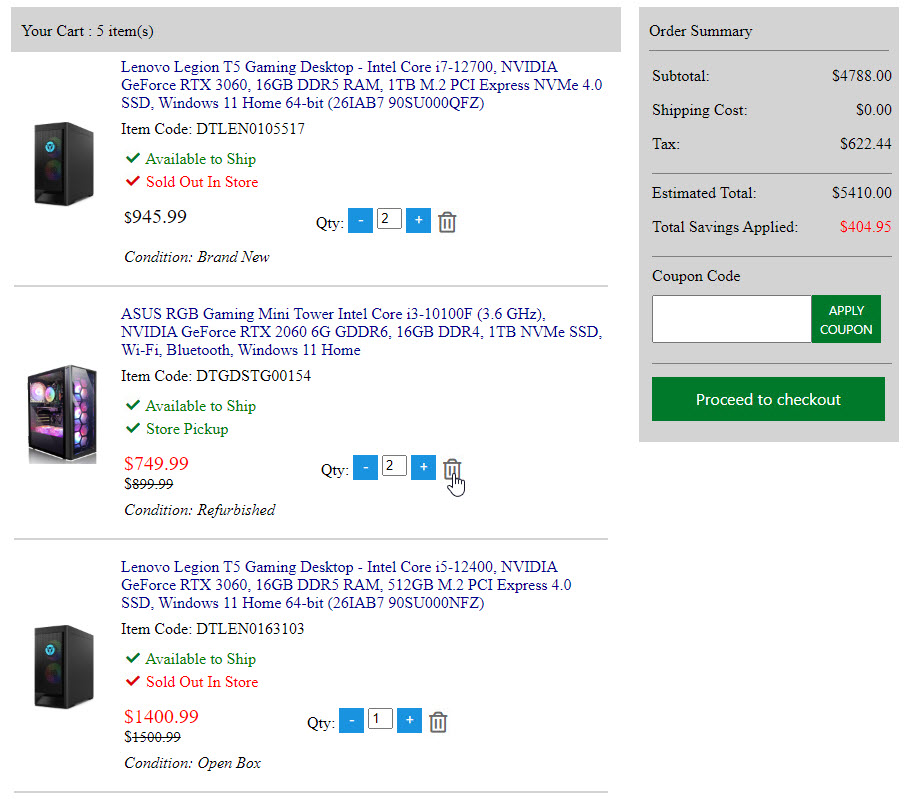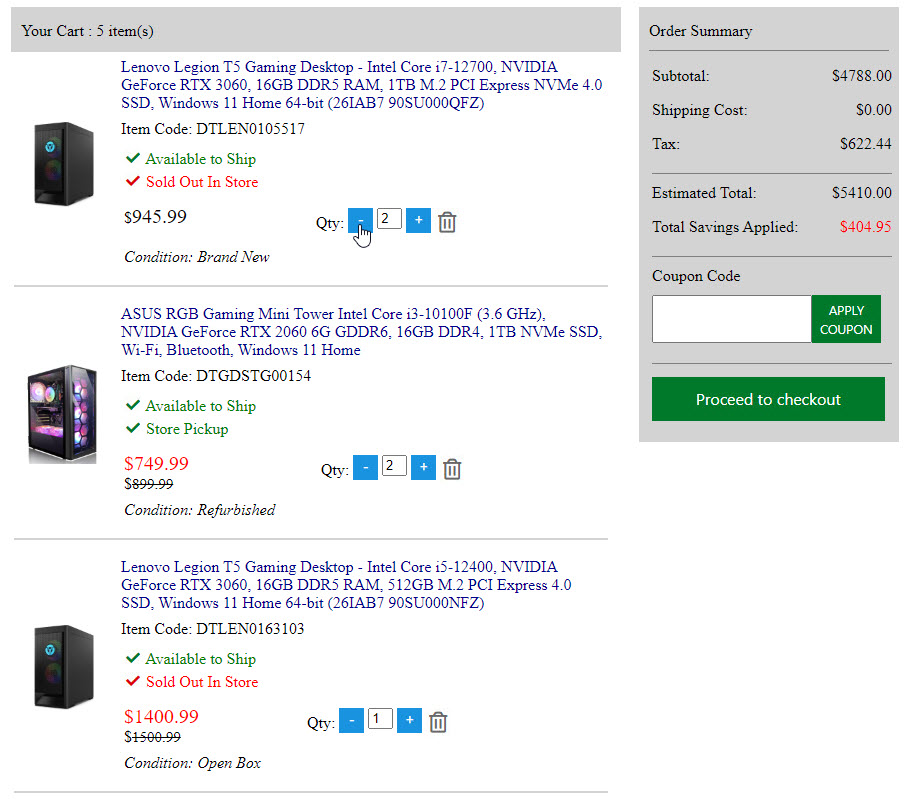 Below screenshots is the 95% done shopping cart page. When you view it. Please follow my mouse cursor.