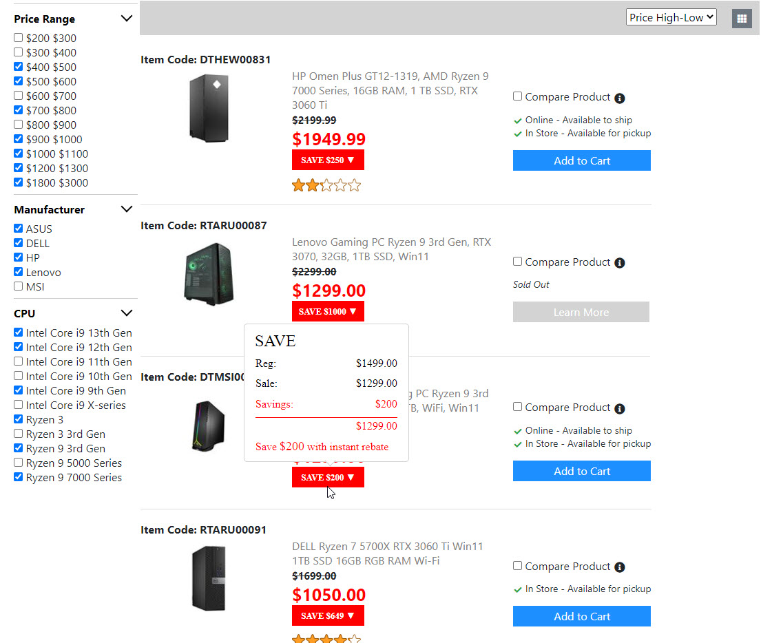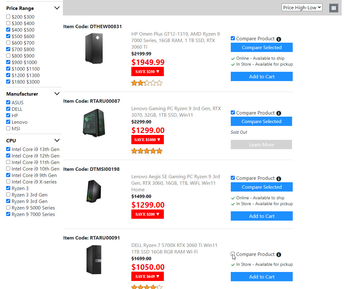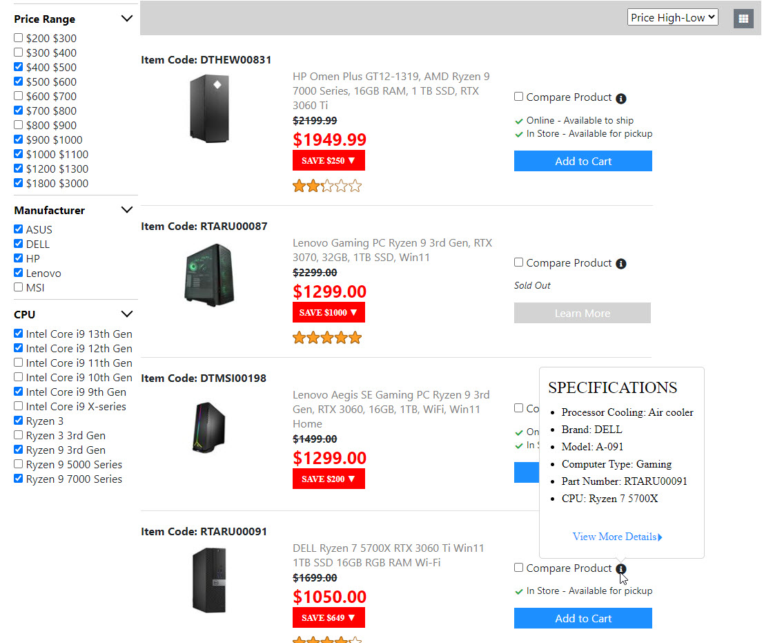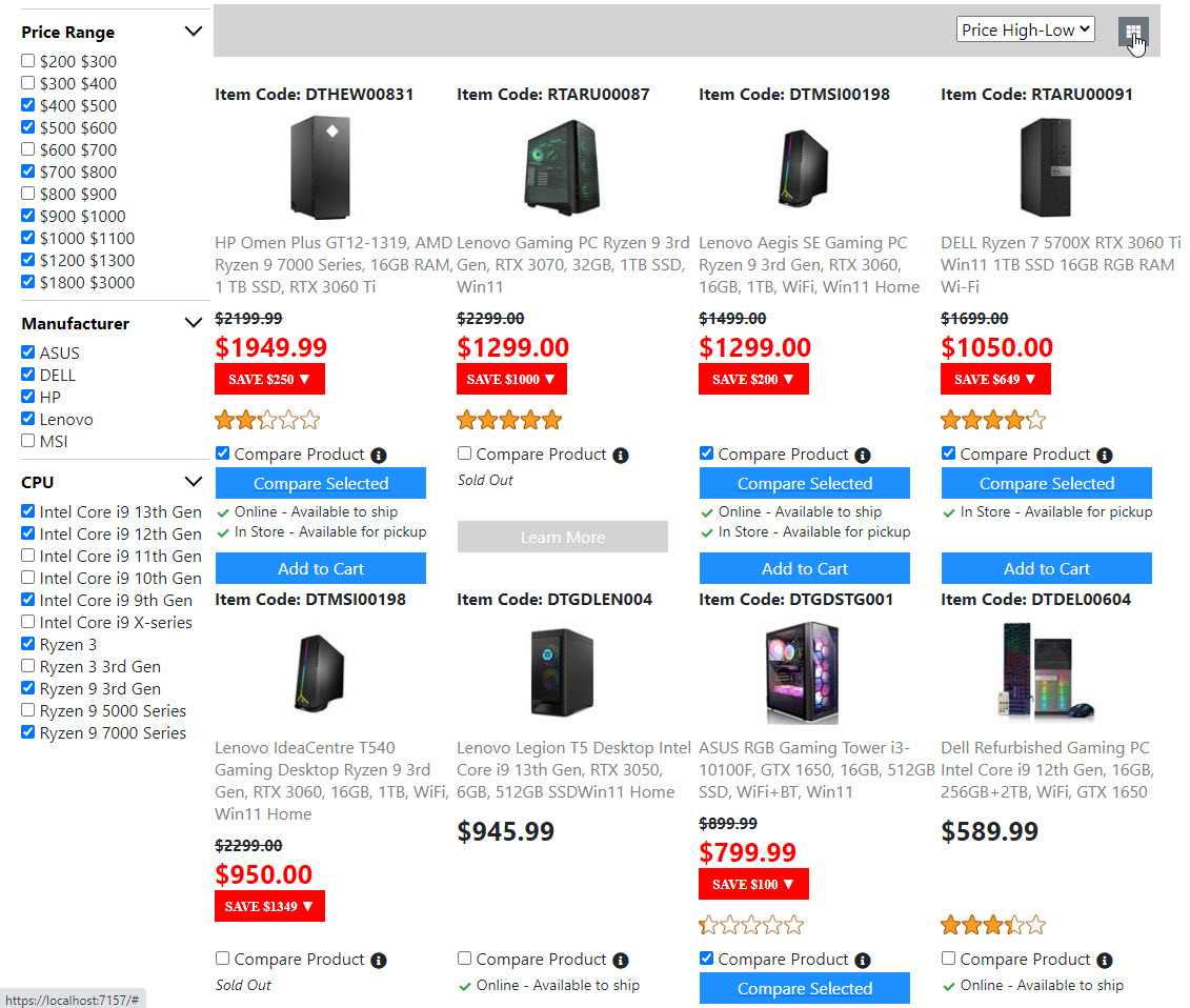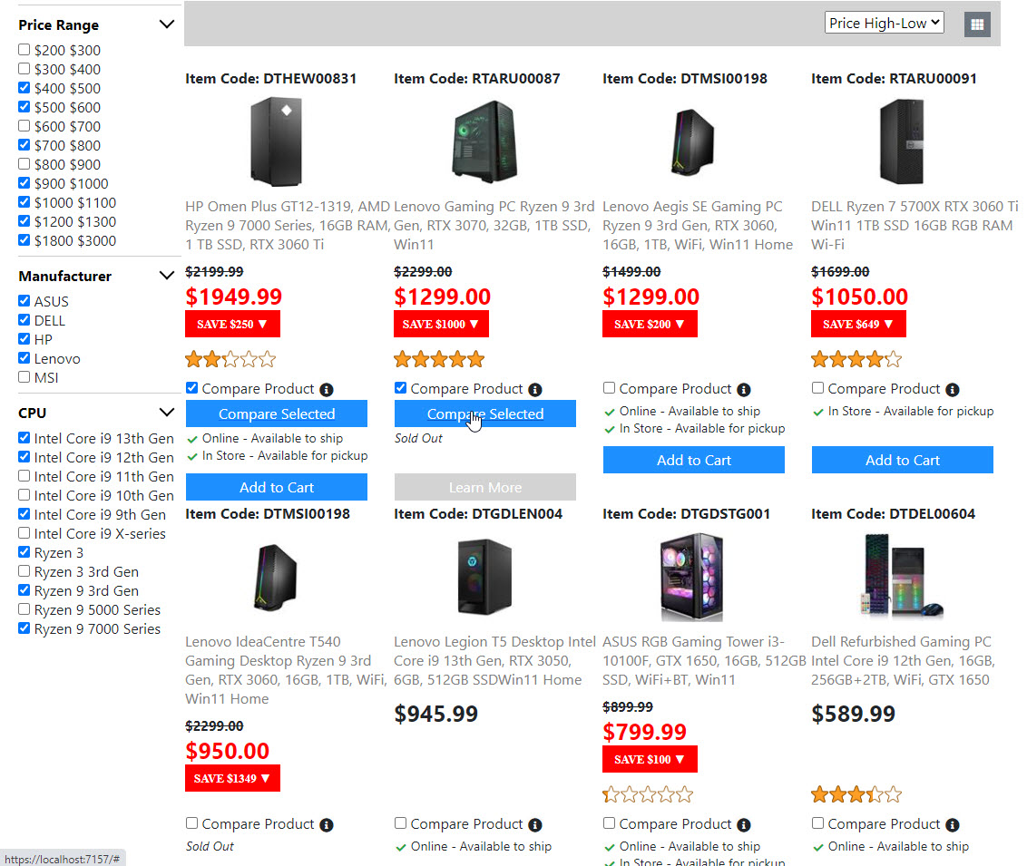 Below is the screenshots for the "Product List Page". Once I get the "Compare Product Page" done. Then the "Product List Page" is done. And I will move on to build the next page.