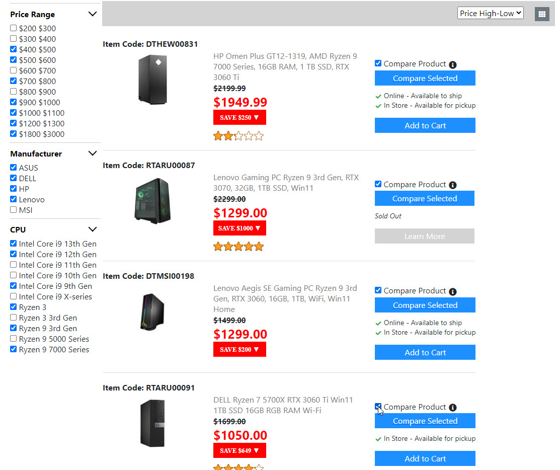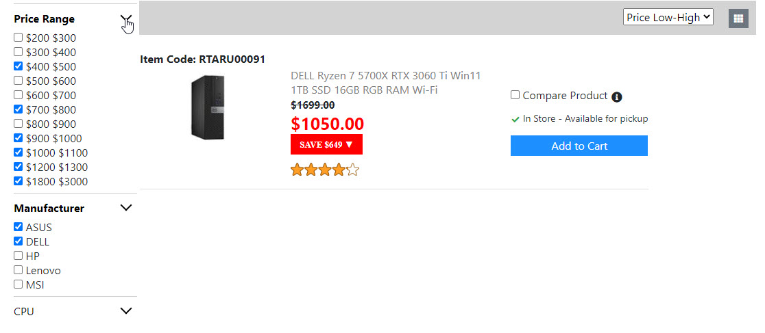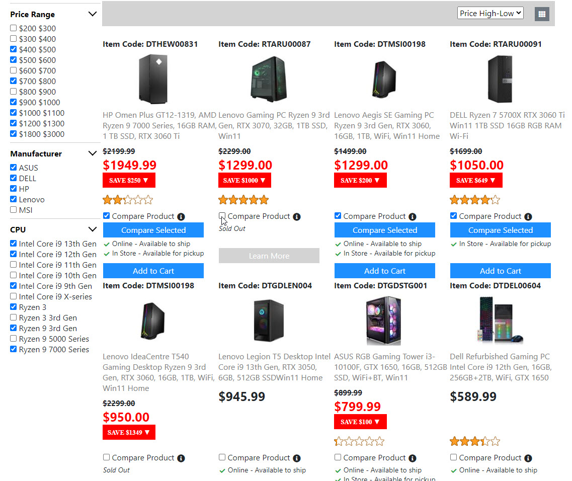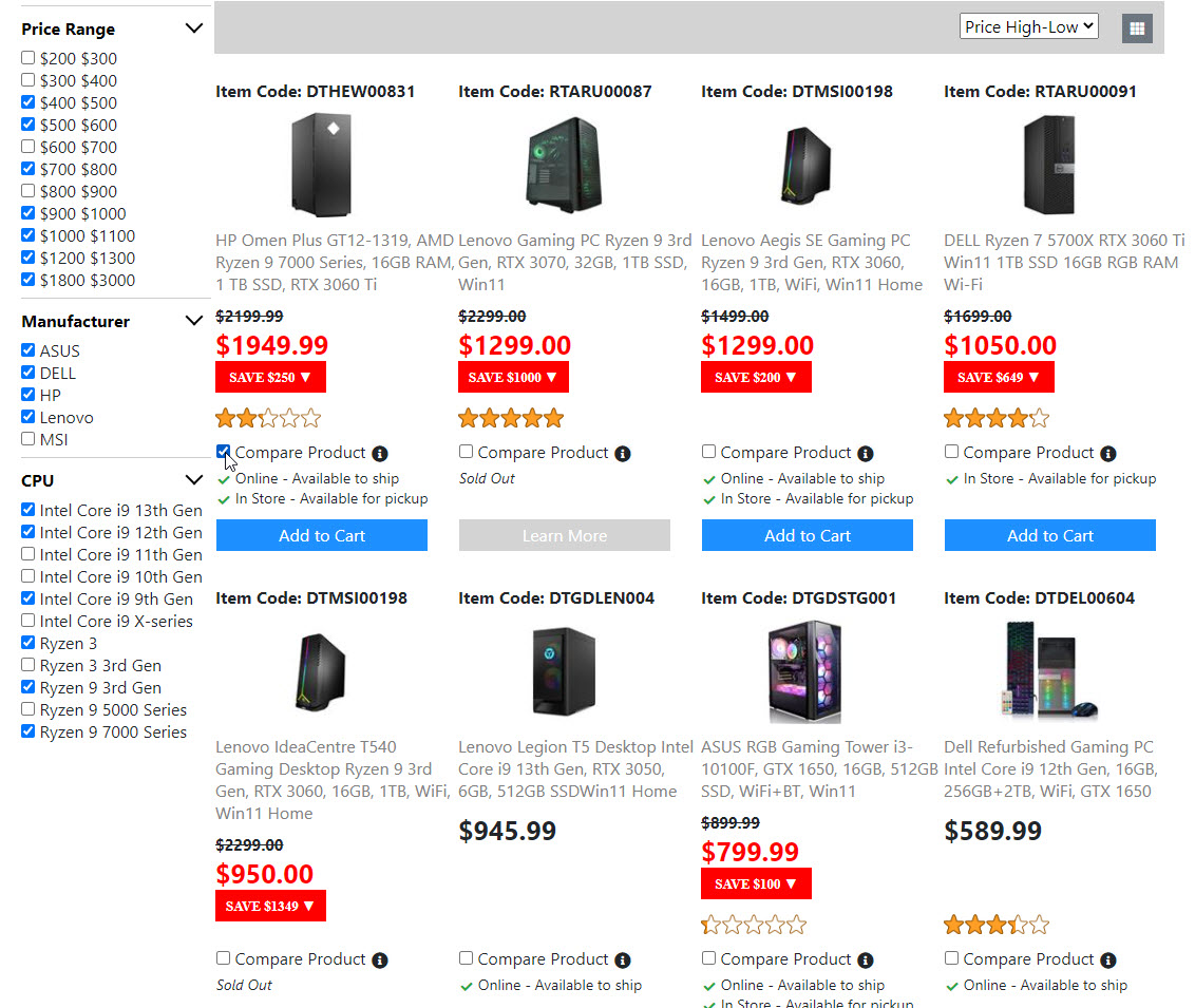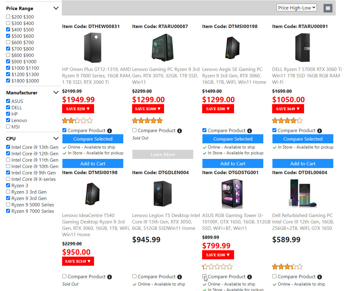 Below is the screenshots for the "Product List Page". Once I get the "Compare Product Page" done. Then the "Product List Page" is done. And I will move on to build the next page.