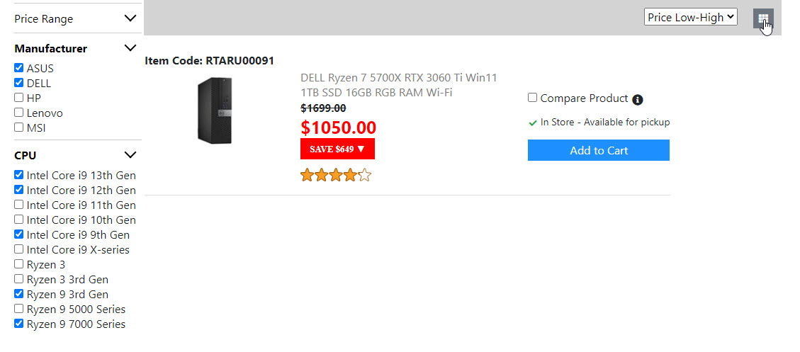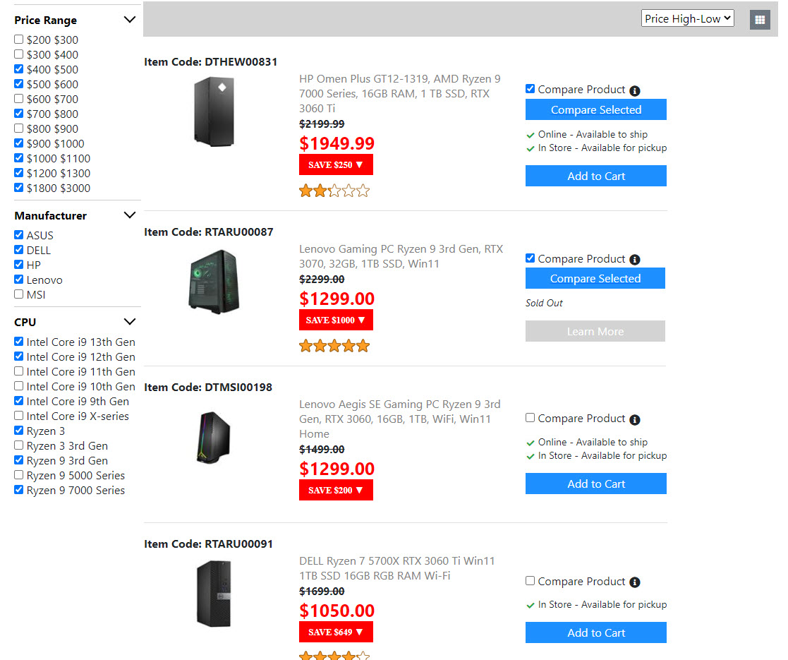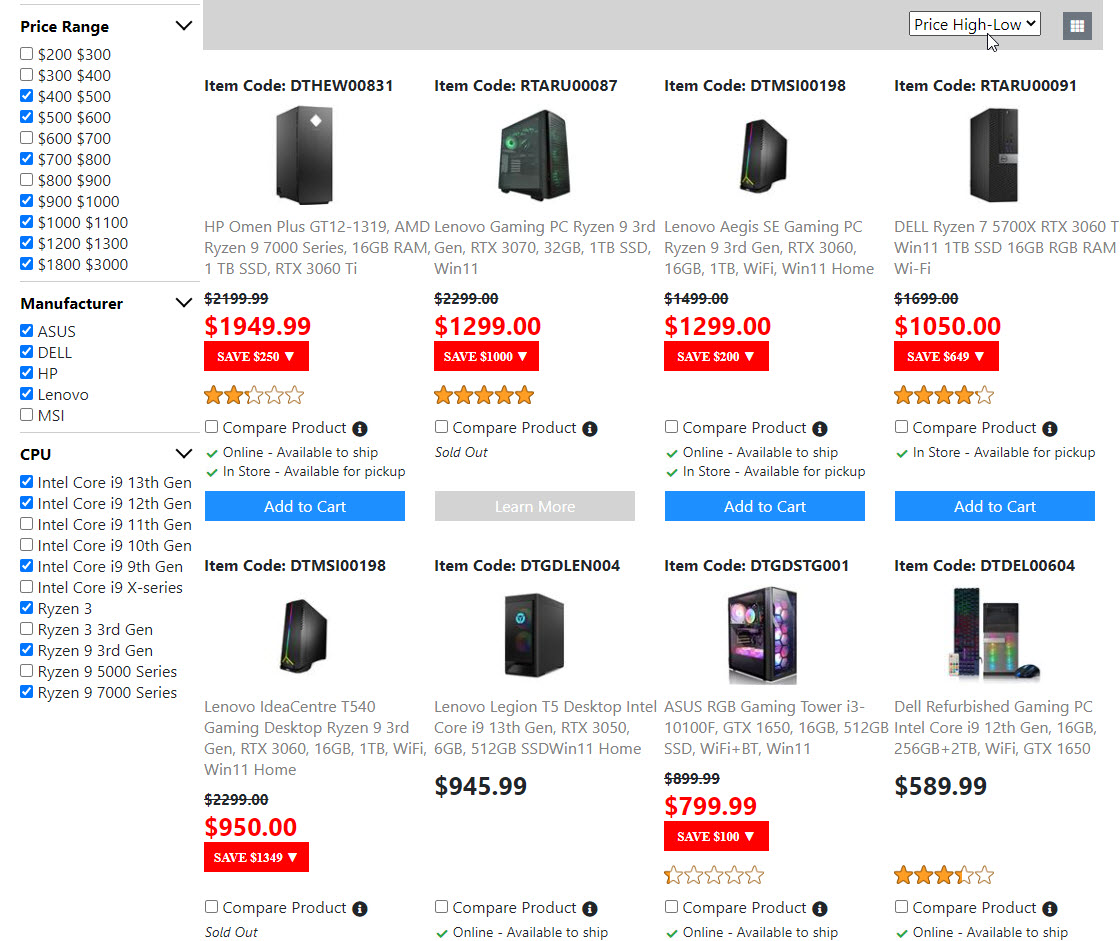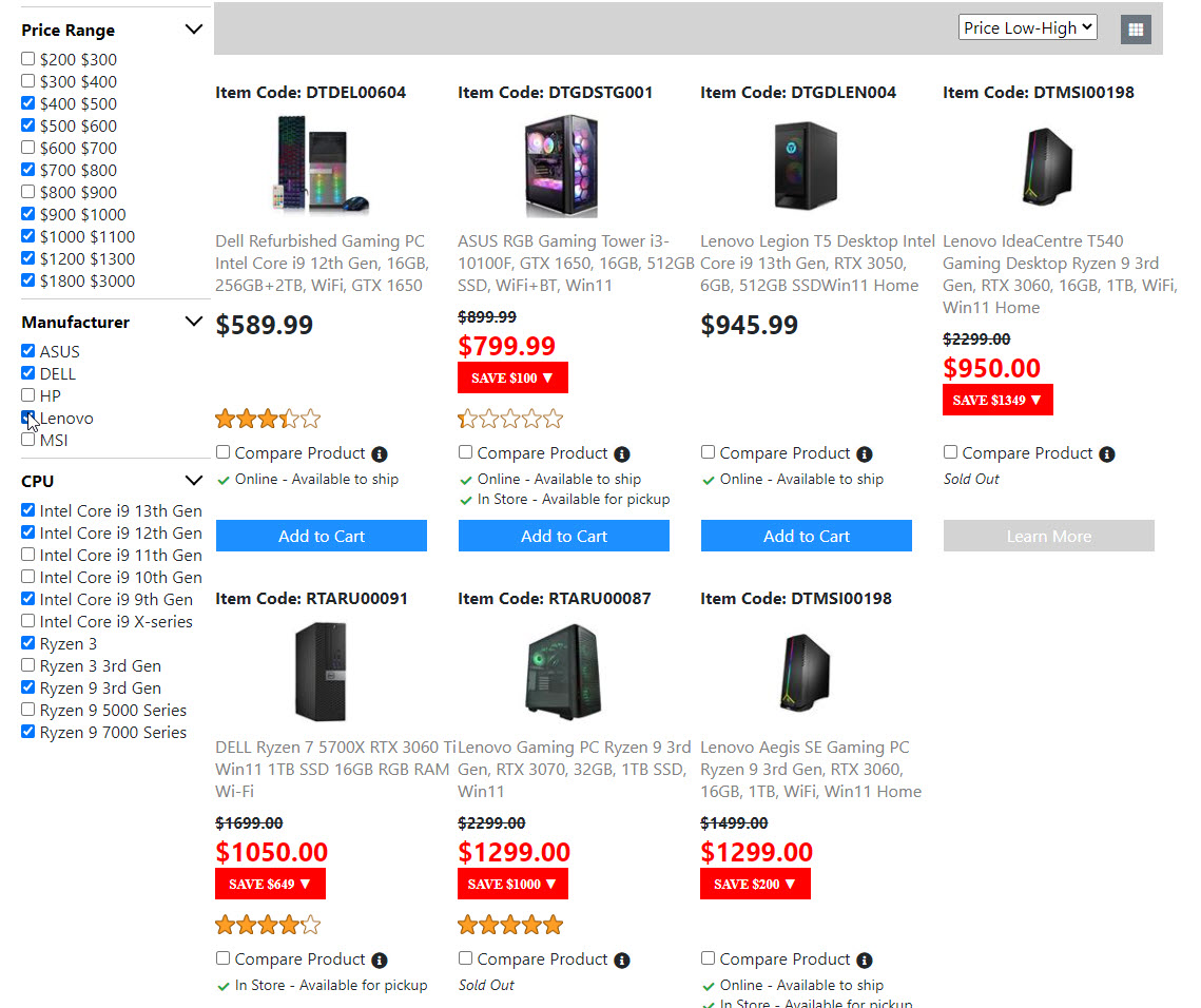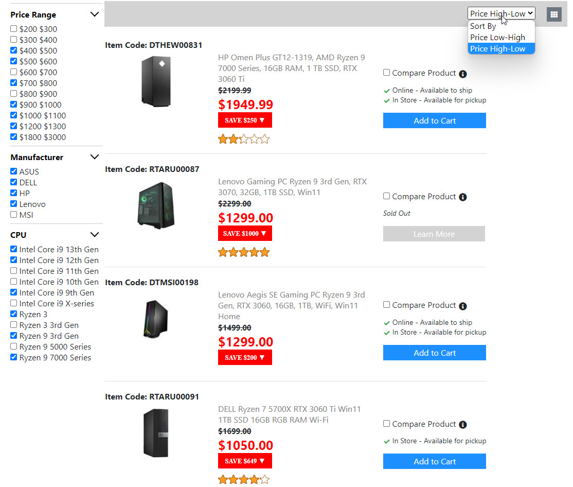 Below is the screenshots for the "Product List Page". Once I get the "Compare Product Page" done. Then the "Product List Page" is done. And I will move on to build the next page.
